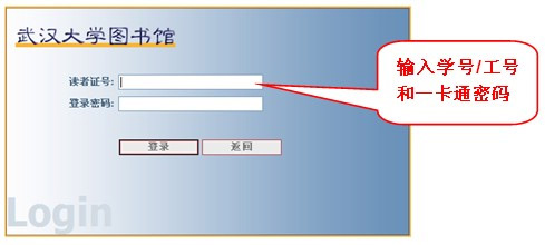 点击“下一步”,进入武汉大学图书馆系统,在页面上输入读者证号和登录密码,如下图:
